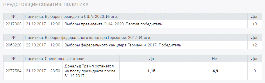 Кроме ставок на спорт в БК Балтбет есть возможность сделать ставки на неспортивные события, например, политические.