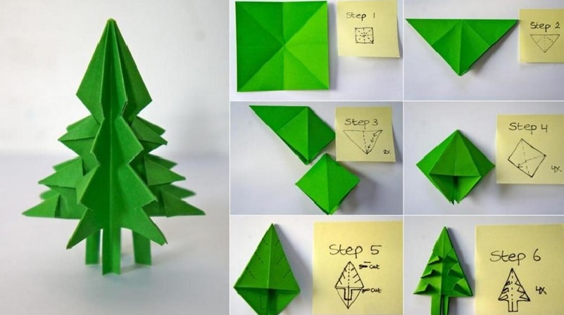 Красиво в интерьере смотрятся объемные снежинки и новогодние оригами, схемы для которых предоставлены ниже.