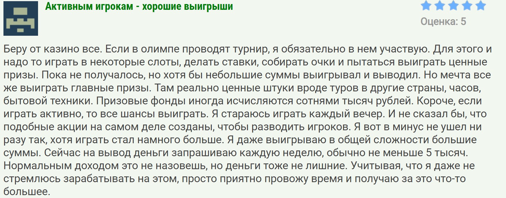 - Поощрение для тех, кто взойдет на олимп. Игрок с VIP-статусом (Профессионал и выше), который внесет от 50000 рублей, получает 100% бонус, и в случае его отыгрыша ему выдается еще 20 тысяч рублей.