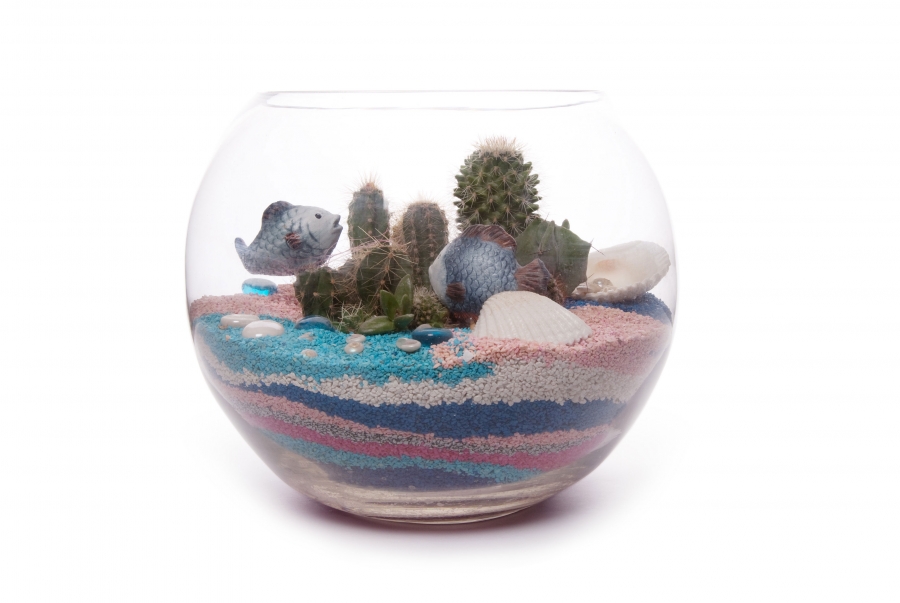 - Флорариум. Это своеобразный аквариум с растительностью и специально созданным микроклиматом, который позволяет уделять растениям минимум внимания. Композиция ручной работы из восхитительных растений не оставит равнодушной ни одну ценительницу природы.