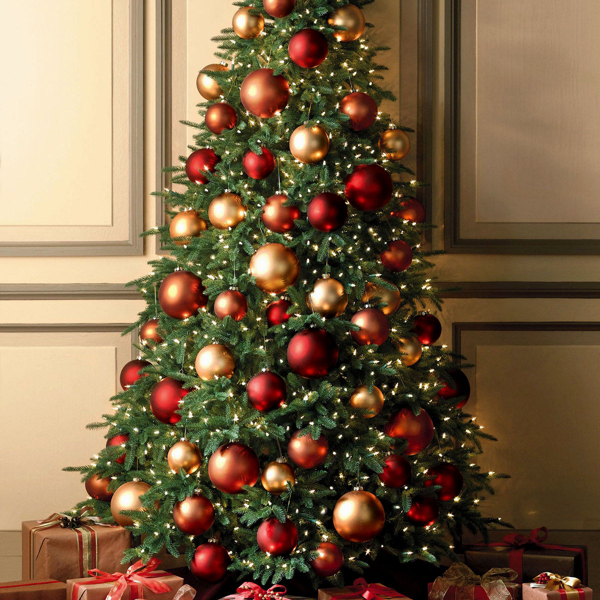Есть возможность обыгрывать размер елочных шаров начиная с самых маленьких, повешенных на верхушке елки, заканчивая крупными, которые украшают ее нижние ветки