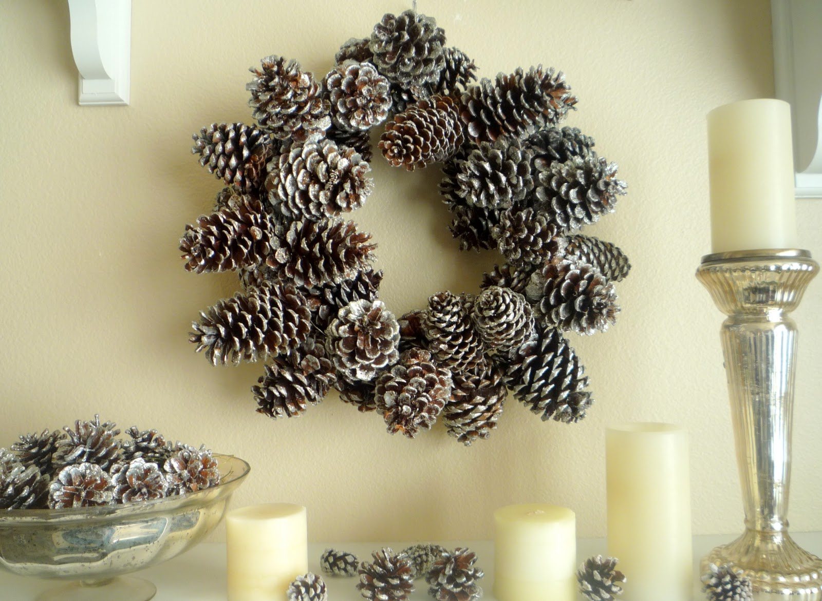 Если в доме уже есть свечи, то можно их немного преобразить. Для этого используйте палочки корицы, бечевку, ленточки, небольшие шишки и другой декор. Буквально пару деталей делают свечи чуть более праздничными.