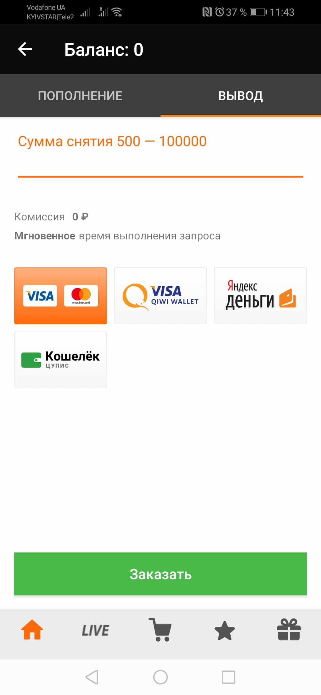 Вывод средств через приложение