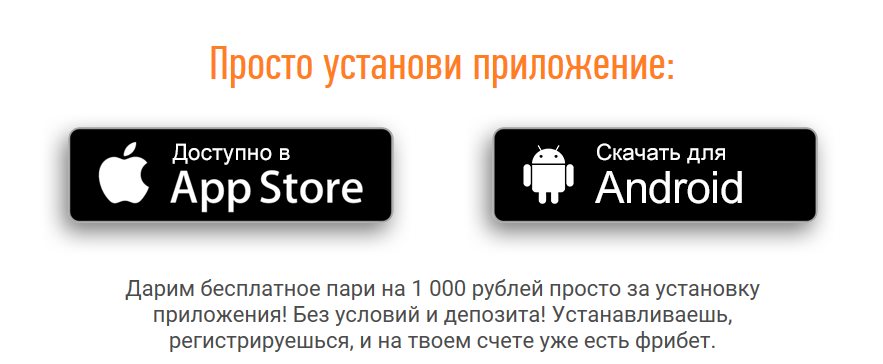 Со старта букмекер дарит клиентам бонус за установку мобильного приложения – 1 000 рублей. Чтобы получить фрибет, от вас потребуется всего лишь загрузить и установить приложение – и больше ничего, никаких депозитов. Вы можете использовать бонус только на ставках, сделанных в мобильном приложении.