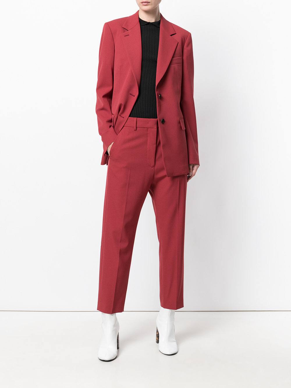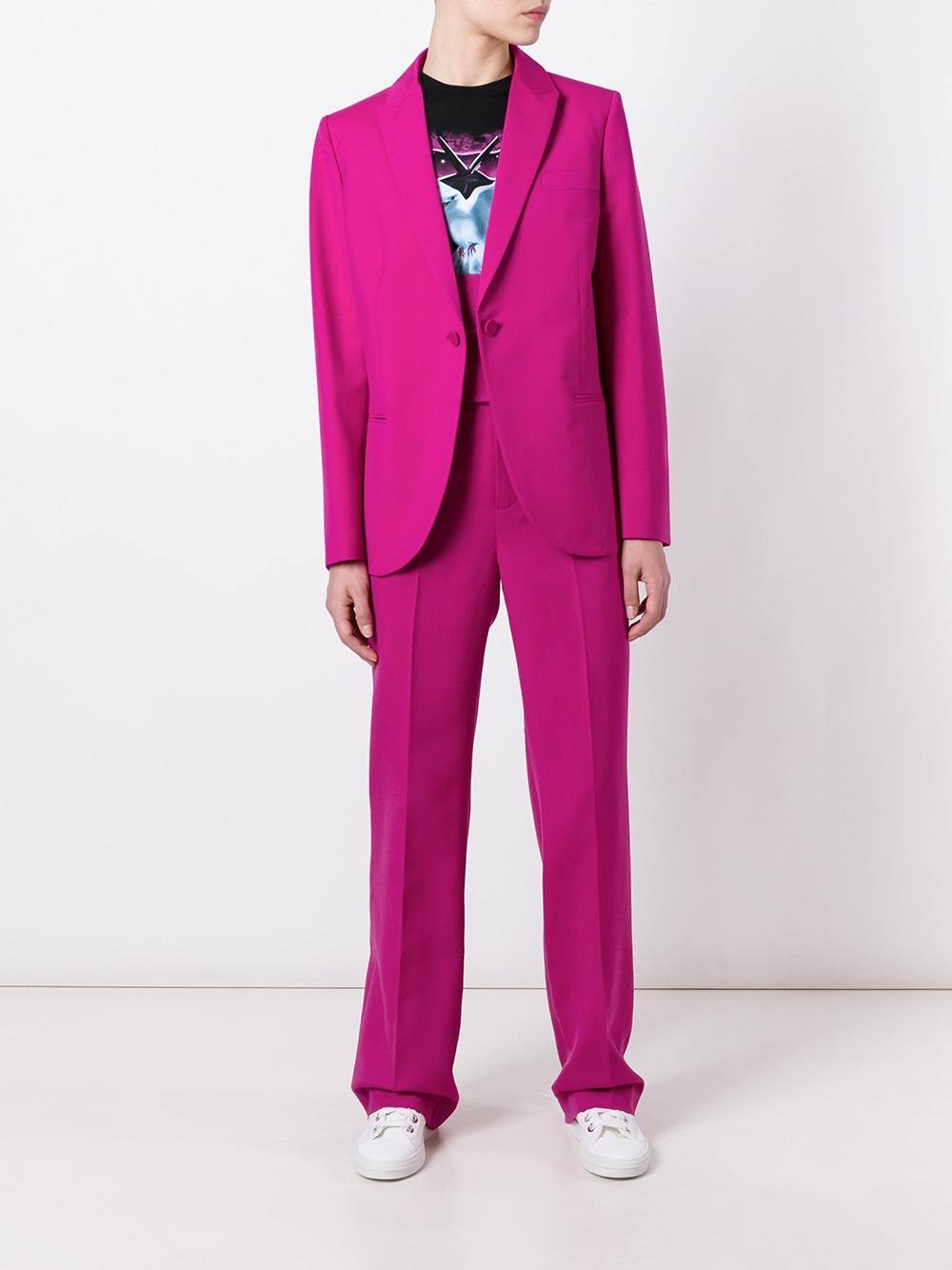 Модные тенденции года сделали акцентом — ярко красный брючный костюм. Эффектные женщины, дерзкие, яркие и независимые, предпочитают строгие линии сочетать с трендовым цветом. Также популярны все оттенки оранжевого. Образ требует безупречности в деталях.