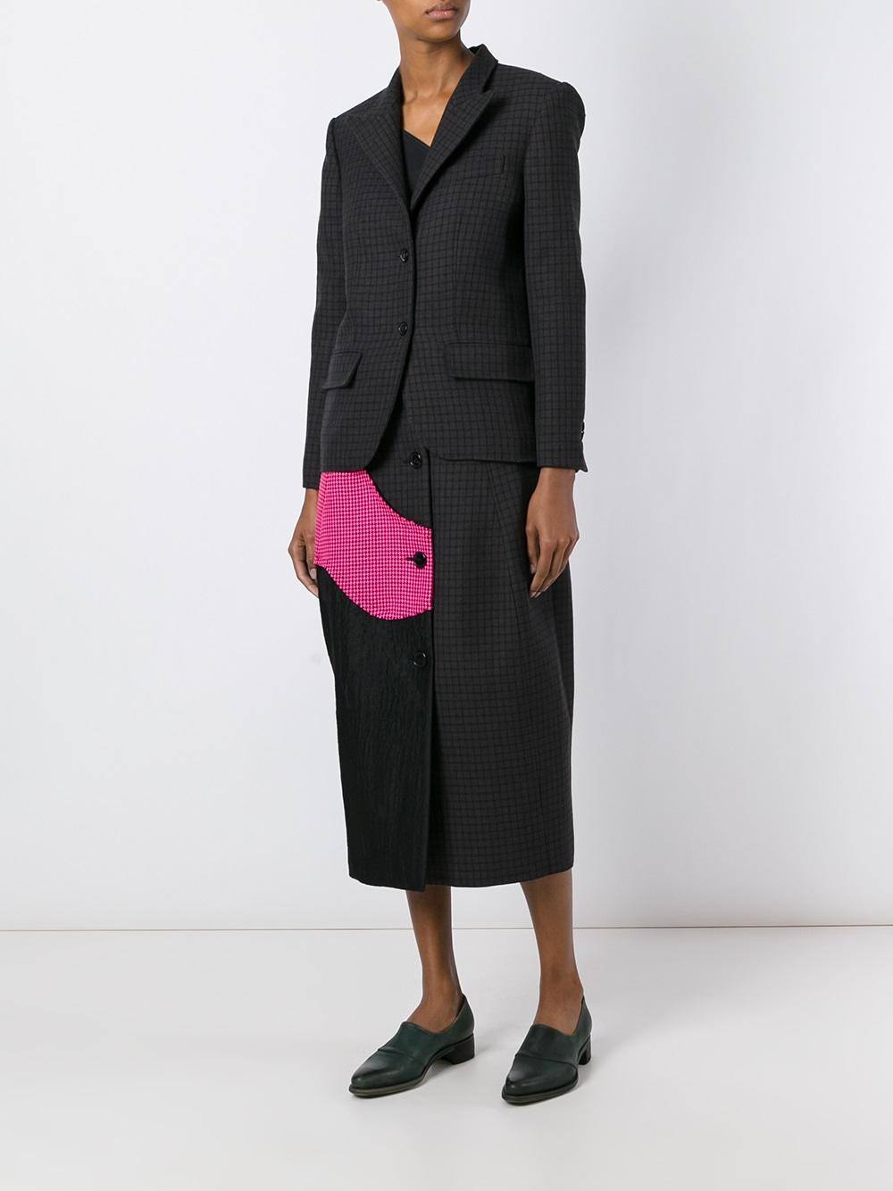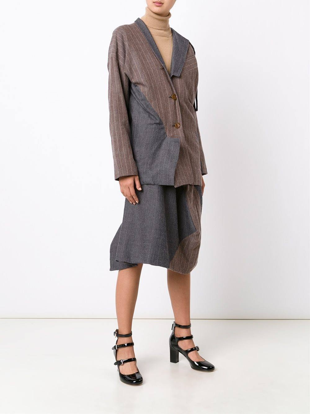 Отличным выбором станут костюмы, в которых жакет или туника имеют темные вставки по бокам. Наличие таких вставок помогает визуально сузить силуэт, и фигура будет выглядеть более стройной.