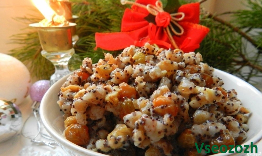 В рождественском меню должно присутствовать 12 блюд: грибы, картофель, вареники, борщ; горячий запеченный гусь; холодная курица с помидорами, кролик в сметане; зеленью и солеными огурцами; рыба, печенье и кутья – обязательное блюдо. Кутью готовят из рисовой или пшеничной каши с маком или изюмом. Рождественский обед непременно должен начинаться с кутьи.