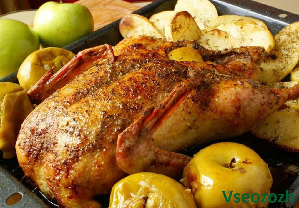 Рождественский гусь, запеченный с яблоками