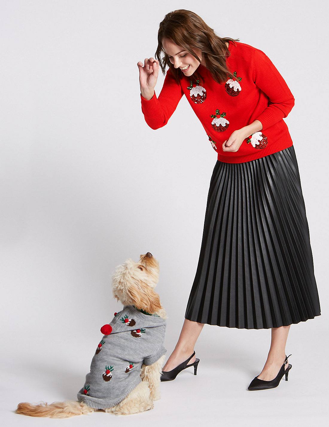 - Юбка с вышитым бисером, кашемировым свитером или ретро-кардиганом,