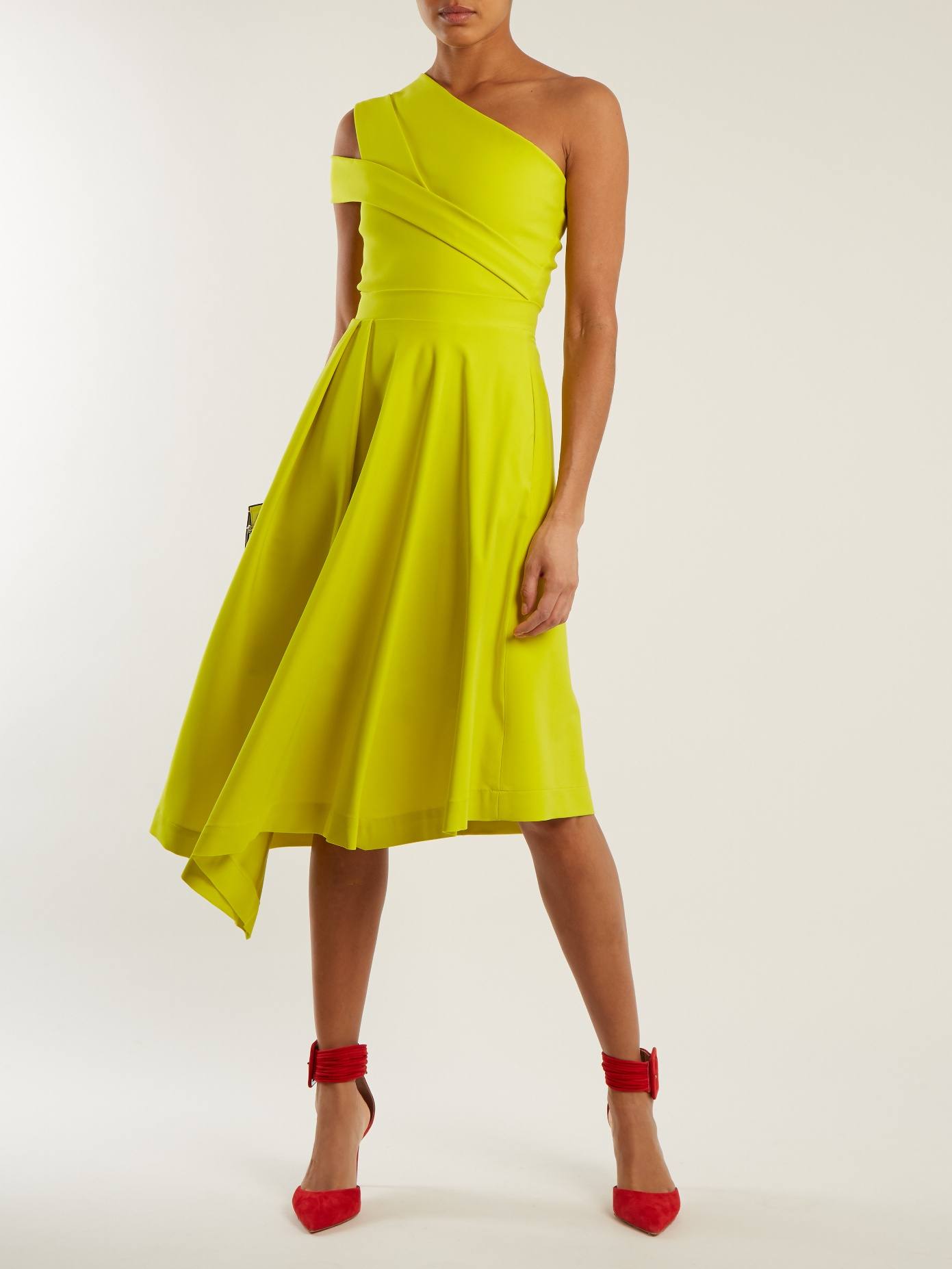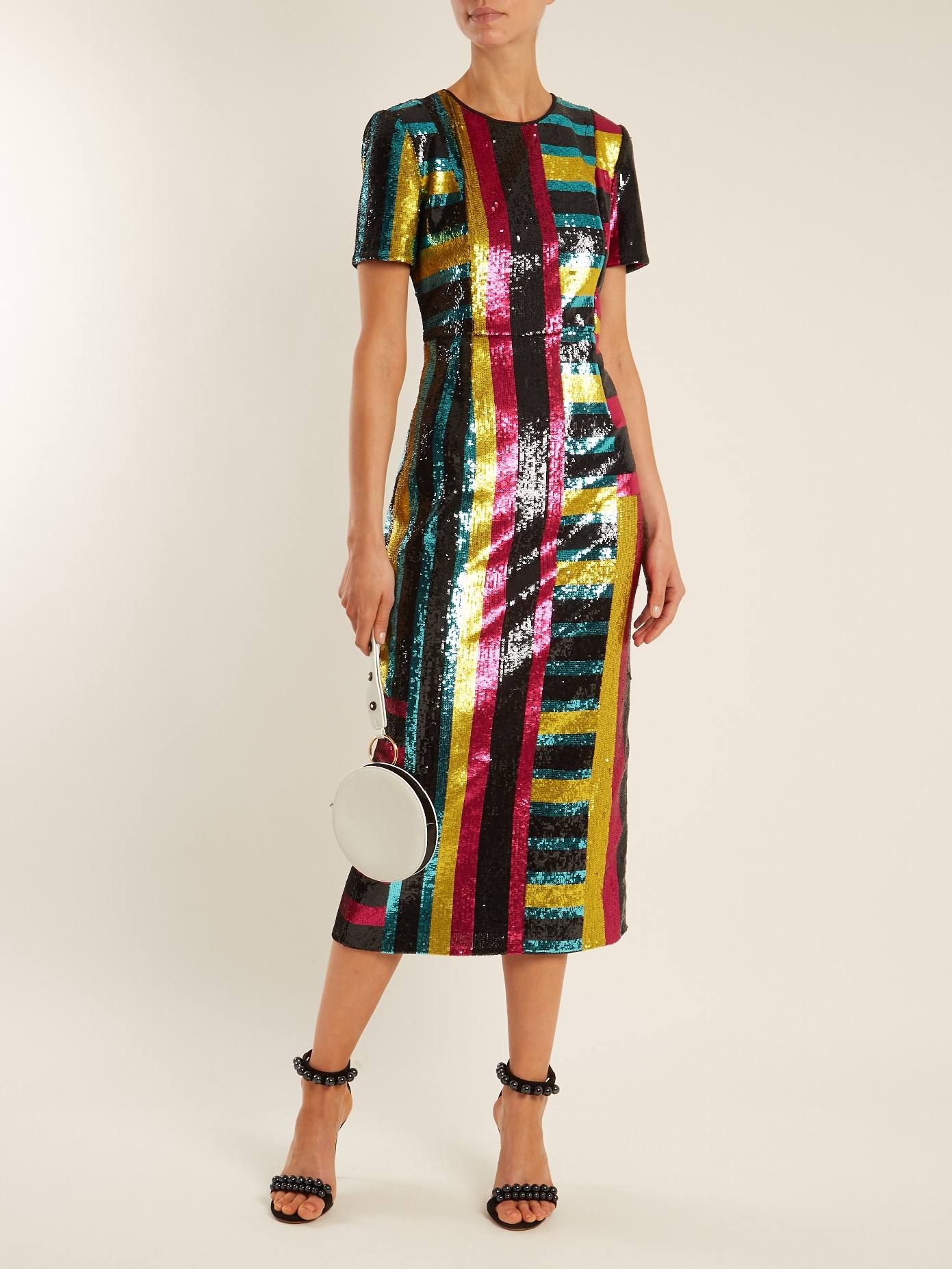 - Девушкам с прямоугольным типом фигуры (талия, плечи и бедра практически одного объема) лучше всего подойдут облегающие фасоны платьев средней длины. Сформировать плавную линию талии помогут цветные вставки на боках платья или широкий пояс.