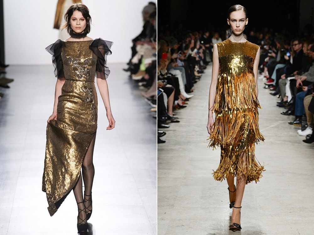 В качестве декора, кроме блестящих элементов, в моду вошли пух, перья и бахрома. Они вполне допустимы и быстро создадут эффект легкости и воздушности лука. К тому же описанные декоративные особенности позволяют корректировать фигуру: