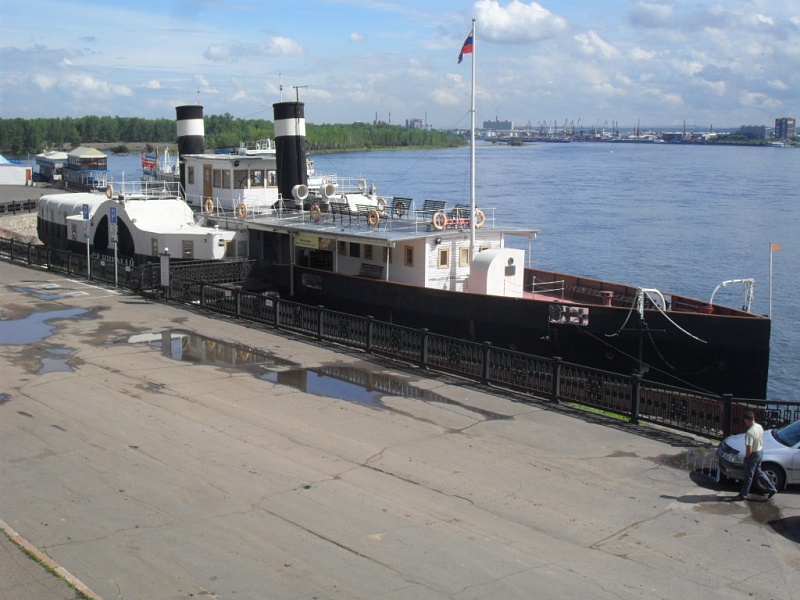 Пароход, ныне стоящий на вечном приколе на набережной Енисея, был построен в 1886 году. Сейчас переоборудован в музей. Подробнее здесь.