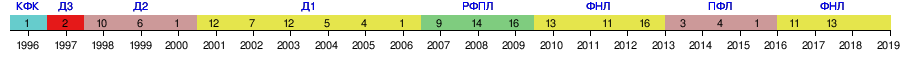 08.1998 — 07.09.1998 | 8 | 3 | 2 | 3 | 13-11 | 8 |