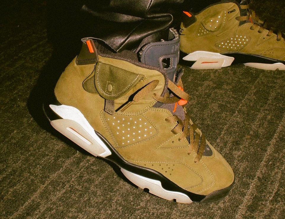 Недавно Трэвиса Скотта заметили в новых Air Jordan 6 желтого цвета. Скорее, всего эта расцветка является релизом Friends & Family. Детали кроссовок почти ничем не отличаются от розничной версии: оливковый верх заменен на горчичный.