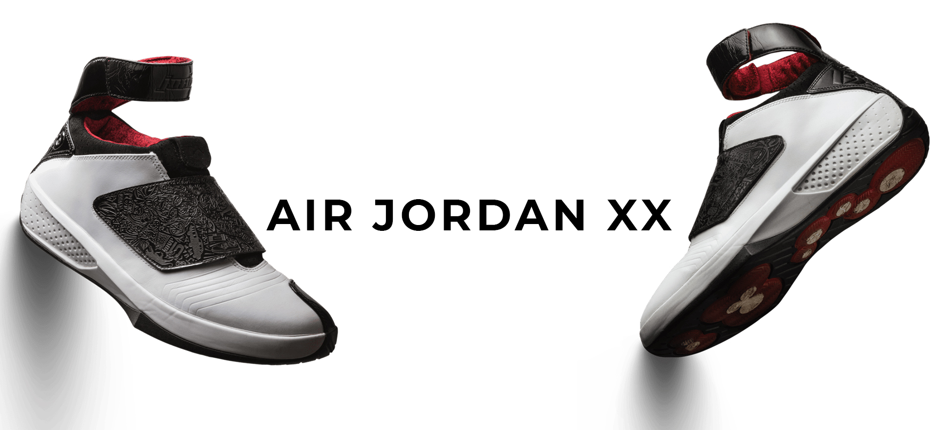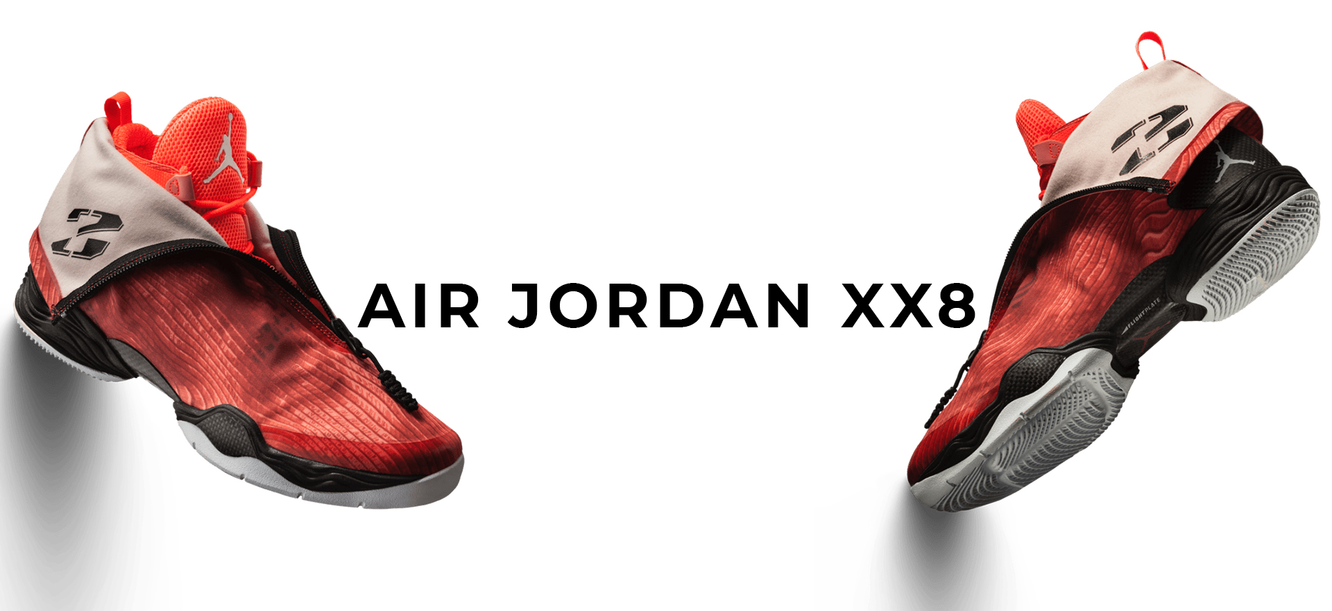 Air Jordan XX8 – вернувшись к привычной нумерации, Тинкер в 2013 году создает неповторимую высокую модель. Черный сетчатый верх, технологии «Nike Zoom», «Jordan Flight Plate».