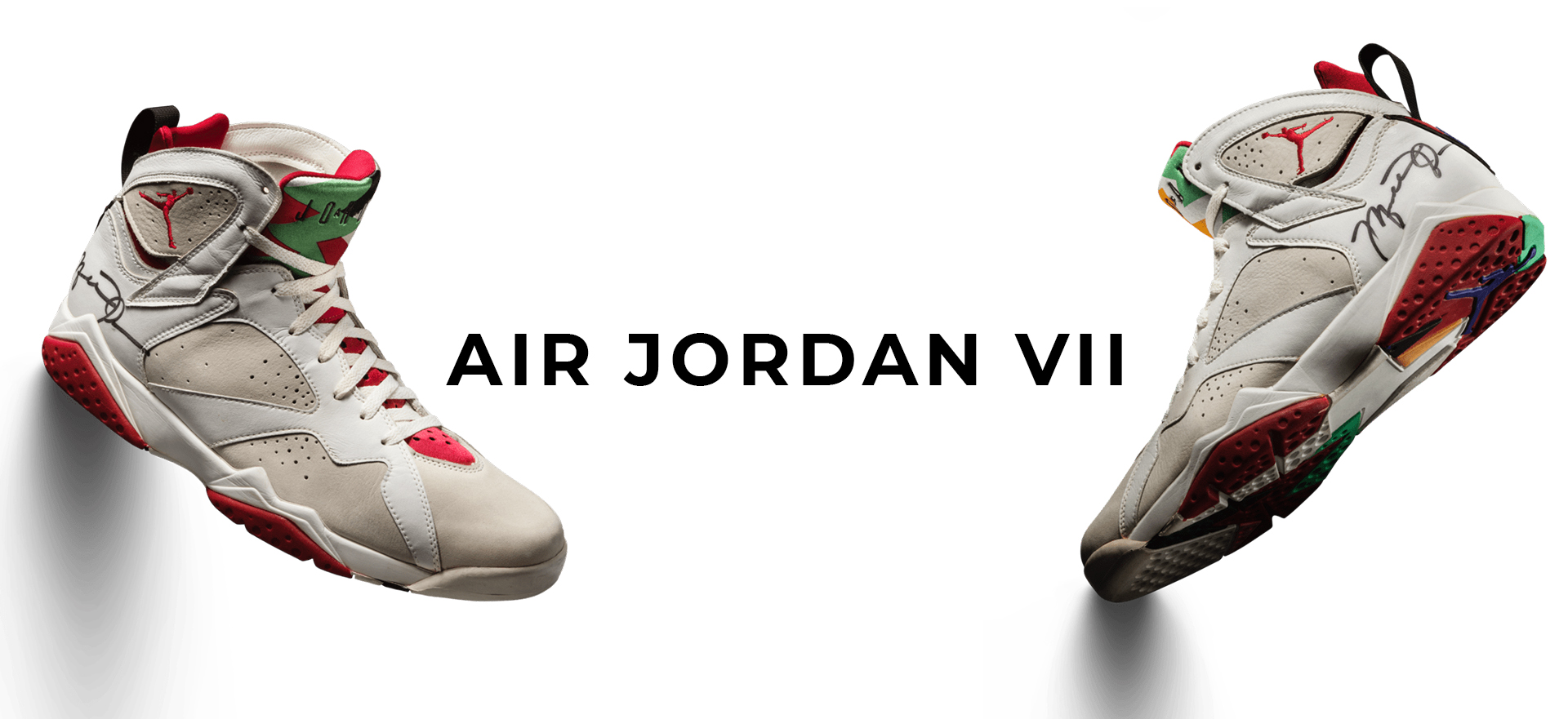 Air Jordan VII стали известными благодаря интересной и забавной рекламе с кроликом Багсом Банни. Модель не сильно отличалась от предыдущей версии, но в ней добавилась новая улучшенная технология фиксации Nike Huarache.