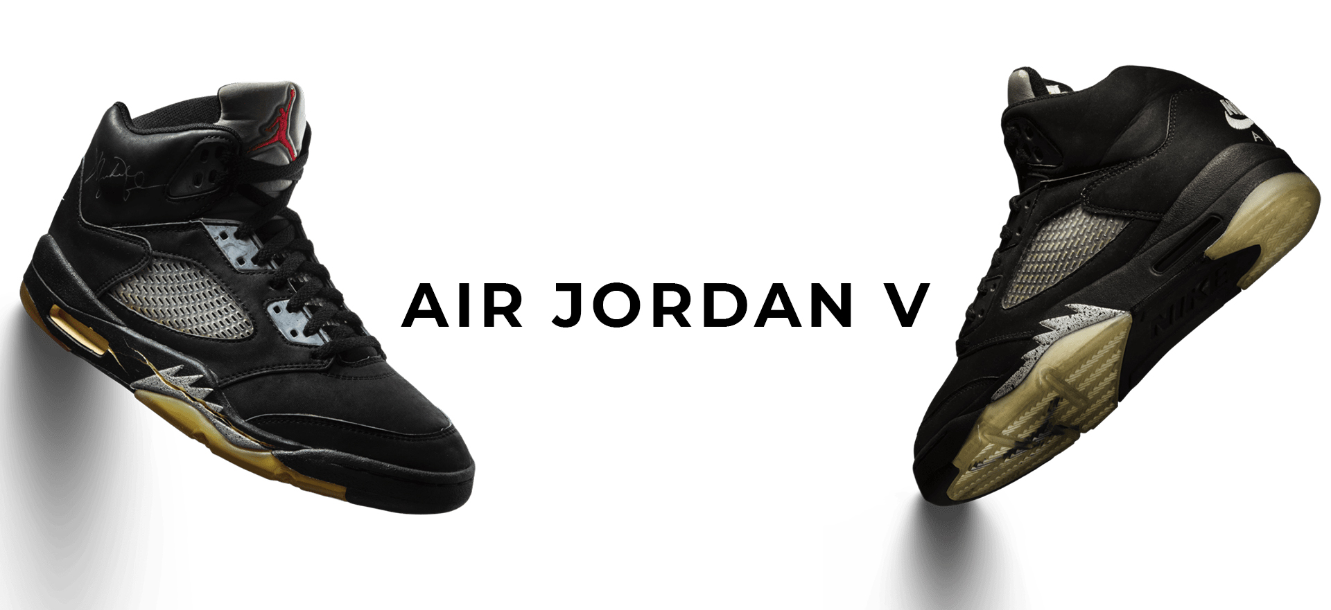 Тинкер Хэтфилд разработал Air Jordan 5 с учетом «кусачей игры» Джордана: в основу силуэта был положен дизайн американских истребителей времен Второй мировой, украшенных острыми зубами. Идея с прозрачной подошвой могла прийти дизайнеру из другого проекта того же года — футуристичных Nike Марти Макфлая из «Назад в будущее 2». Сам Майкл показал свои наилучшие результаты, заработав 69 очков в одном матче против «Кливленд Кавальерс».