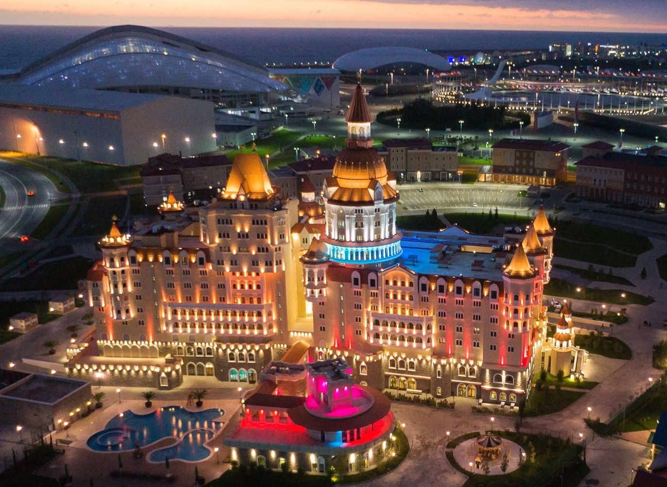 Располагается там же, где и предыдущий отель, недалеко от Олимпийского парка. Особенность гостиничного комплекса в его 11 корпусах – они названы в честь столиц известных стран. На его территории 10 тематических ресторанов с разнообразной кухней, комплекс бассейнов, бань, бары, тренажерные залы, массажные кабинеты и салоны красоты, также есть спортивные площадки и бизнес-центр. В общем, 1 января можно будет найти для себя занятие.