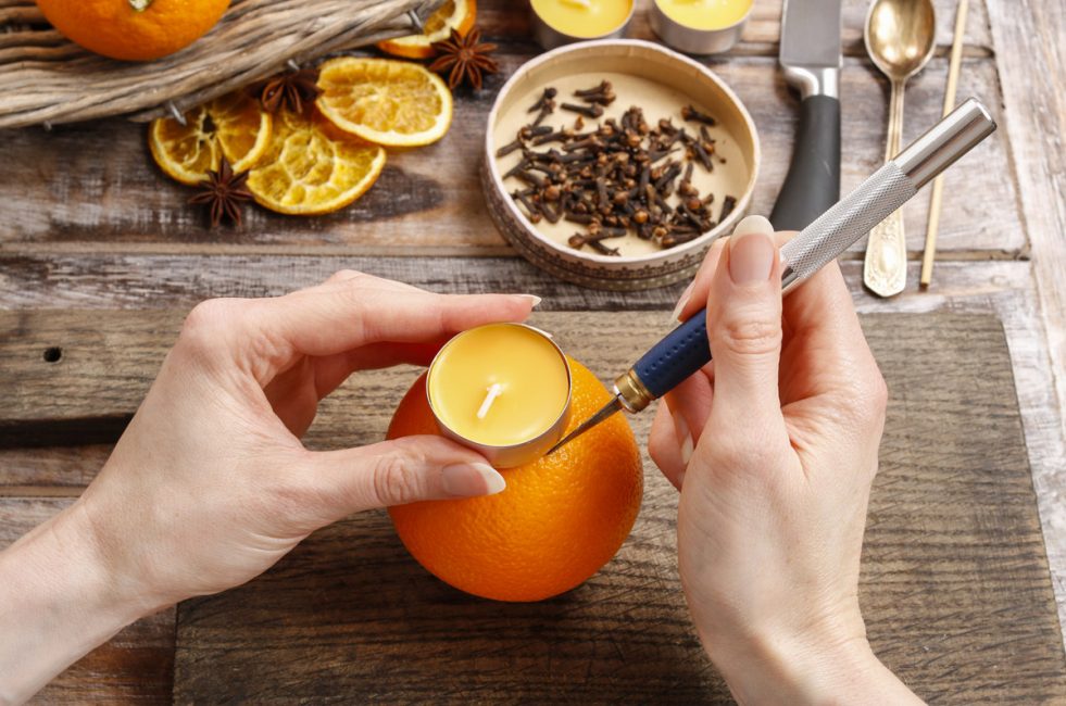 В поисках подручных материалов для нашего приспособления мы отправляемся на кухню. Оригинальные подсвечники мы попробуем сделать из фруктов. Готовьте их непосредственно перед торжеством. Подсвечники из фруктов подарят красивое необычное сияние и тонкий аромат.