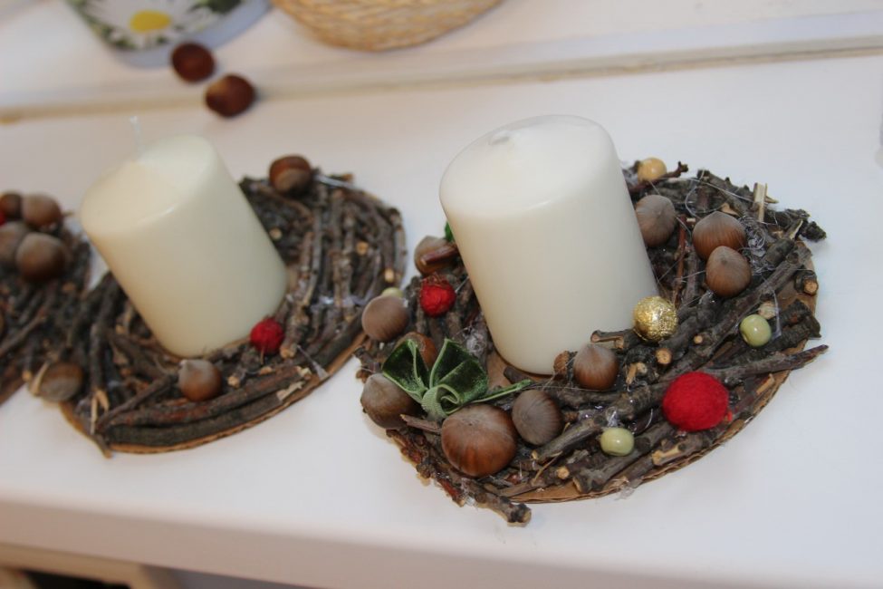 Остается лишь поставить украшение на полку или стол, зажечь свечу!