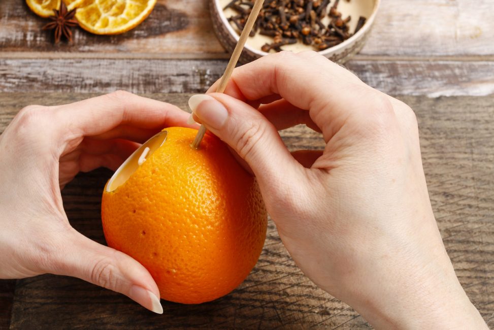 Фрукты украсьте маленькими веточками из пихты, бутонами, стразами. Используйте зубочистки, чтобы прикрепить ягоды рябины и крошечные игрушки.