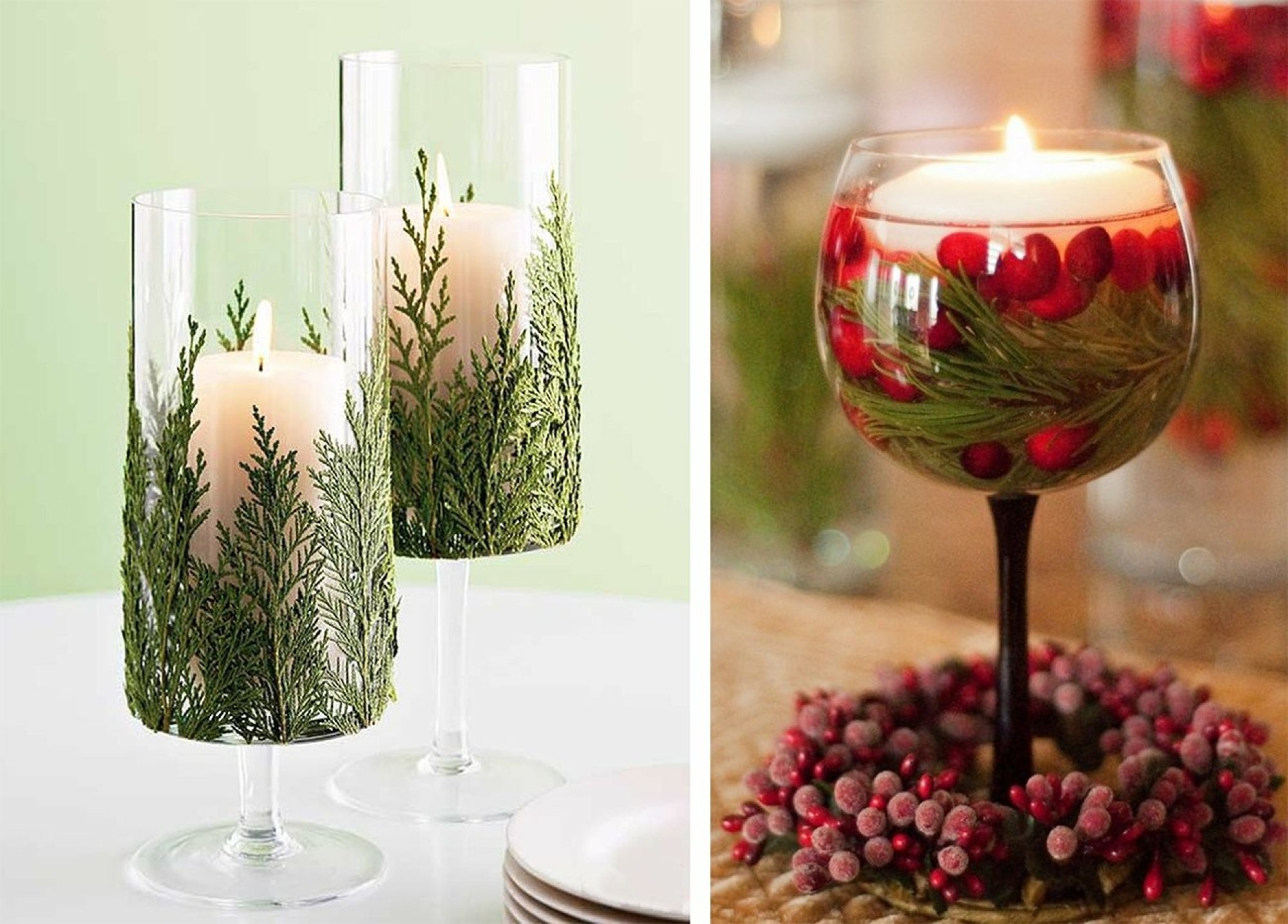 Теперь налейте в салатницу воду и опустите в нее свечи. Добавьте в воду небольшие еловые ветви, рябину и лепестки, чтобы ваша творческая композиция стала главным украшением праздничного стола. Подсвечники можно сделать из ненужных вещей, которые бесполезно хранятся на наших полках. Они даже бывают съедобными. Не верите? Тогда переходите к следующим разделам статьи.