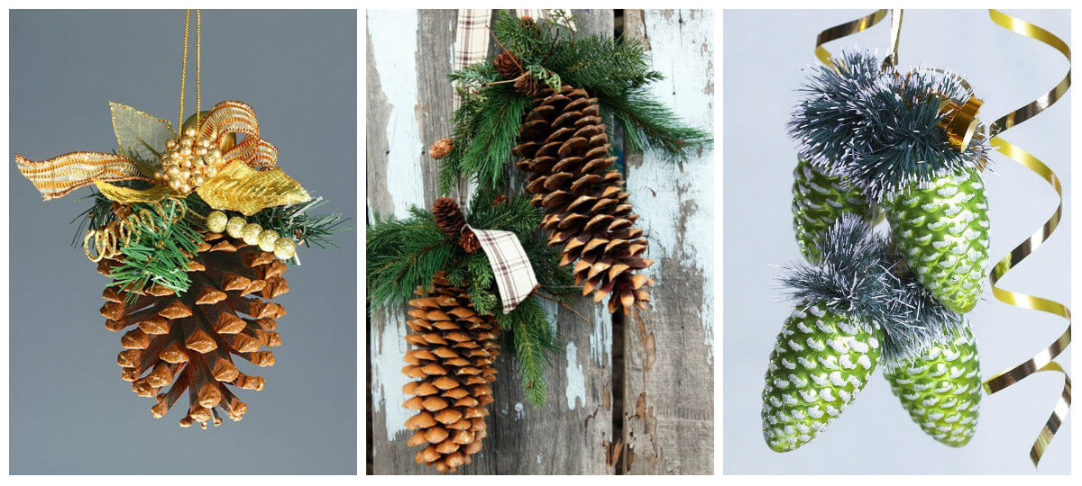 Рассмотрим разные способы новогоднего декора из шишек своими руками.