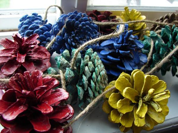 Новогодние гирлянды и елочные игрушки из шишек своими руками
