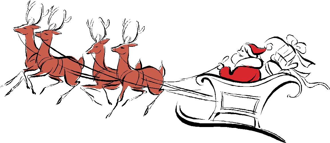 - Очерчиваем части упряжи вокруг шеи и головы лошадки, опускаем к саням палки, к которым она крепится. В руки Деда Мороза вкладываем поводья.
