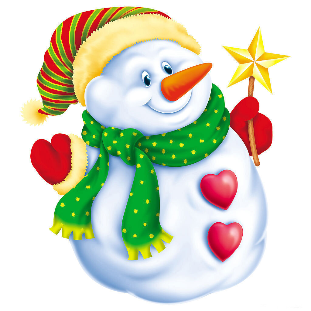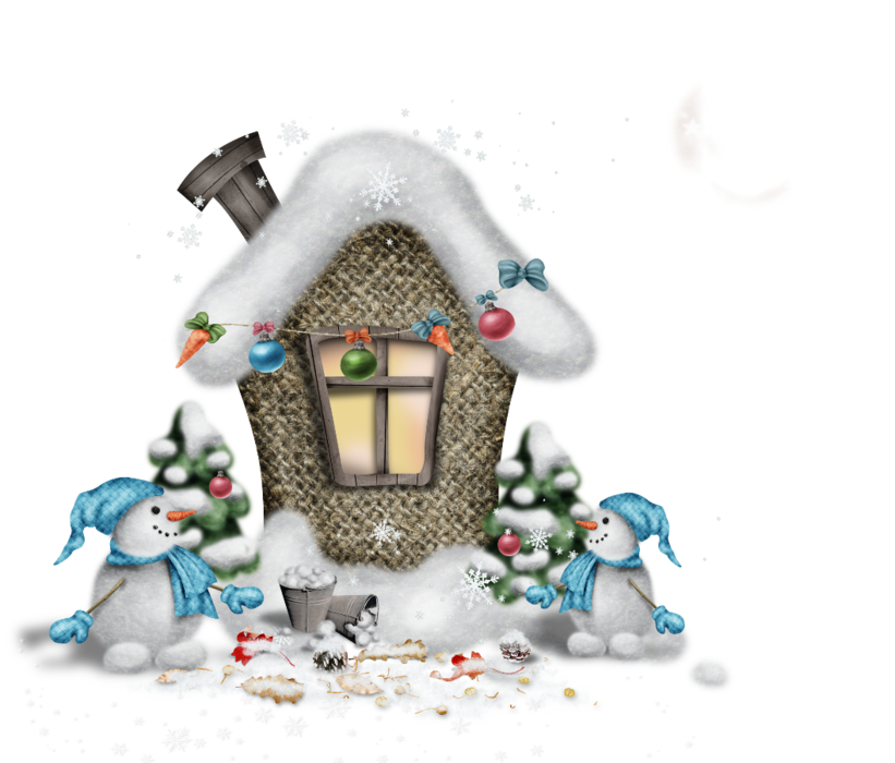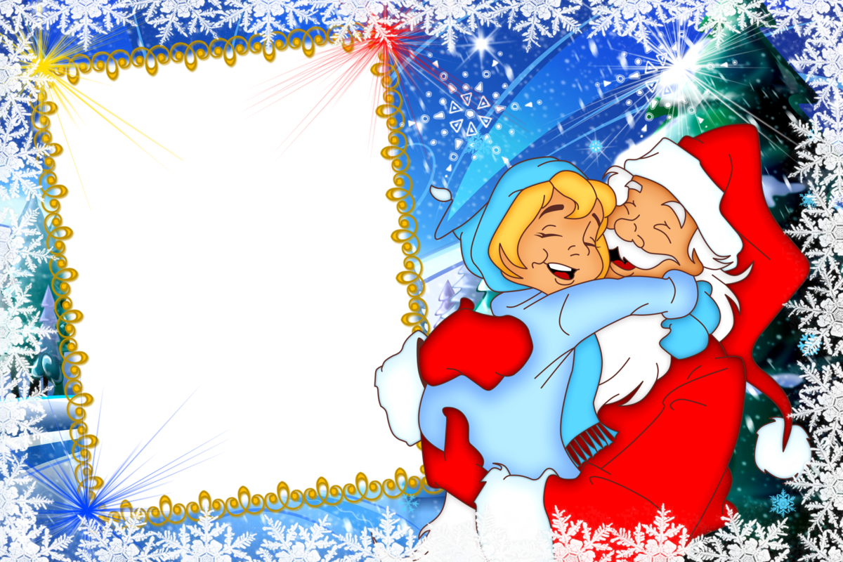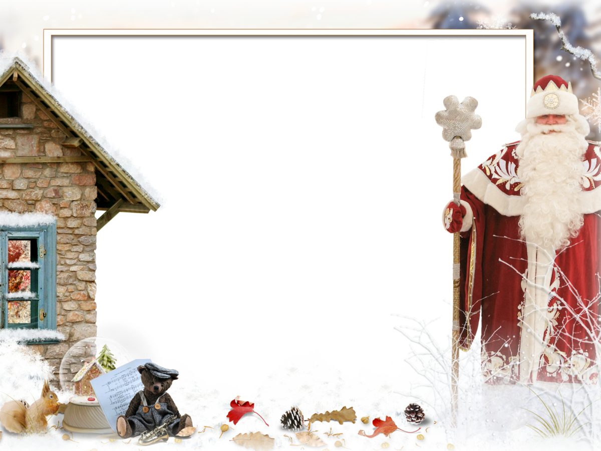- снежинки, Дед Мороз, снегурочка, елка с игрушками, хлопушки и т.д.