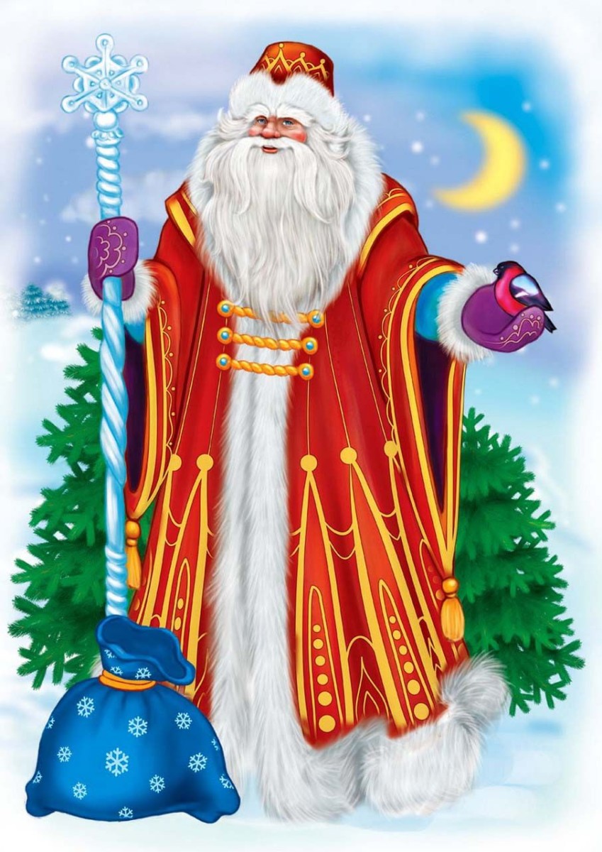 - Плавную линию спины опускаем в сани, а руку в варежке прячем в широкий рукав одежды.