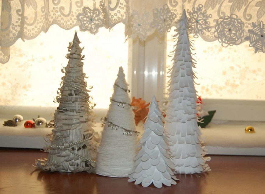 Пластмассовые снежинки отлично подходят для декорирования небольшой елки, размещенной на подоконнике. Снежинки можно собрать в гирлянду.