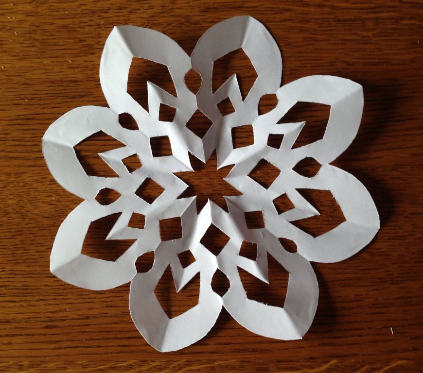 Для снежинки можно нарисовать схему как на картинке или просто вырезать чисто интуитивно.