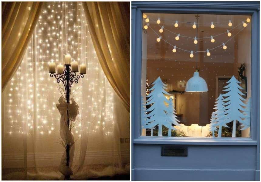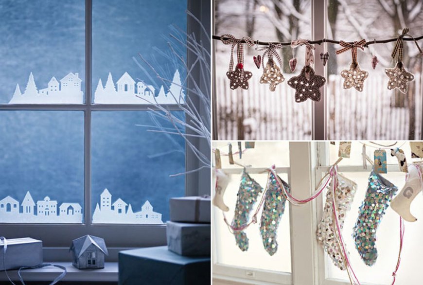 Для создания декоративных элементов подойдут самые обычные материалы. Ниже я предлагаю ознакомиться с идеями, которыми можно воспользоваться для декорирования окон и интерьера квартиры к зимним торжествам.