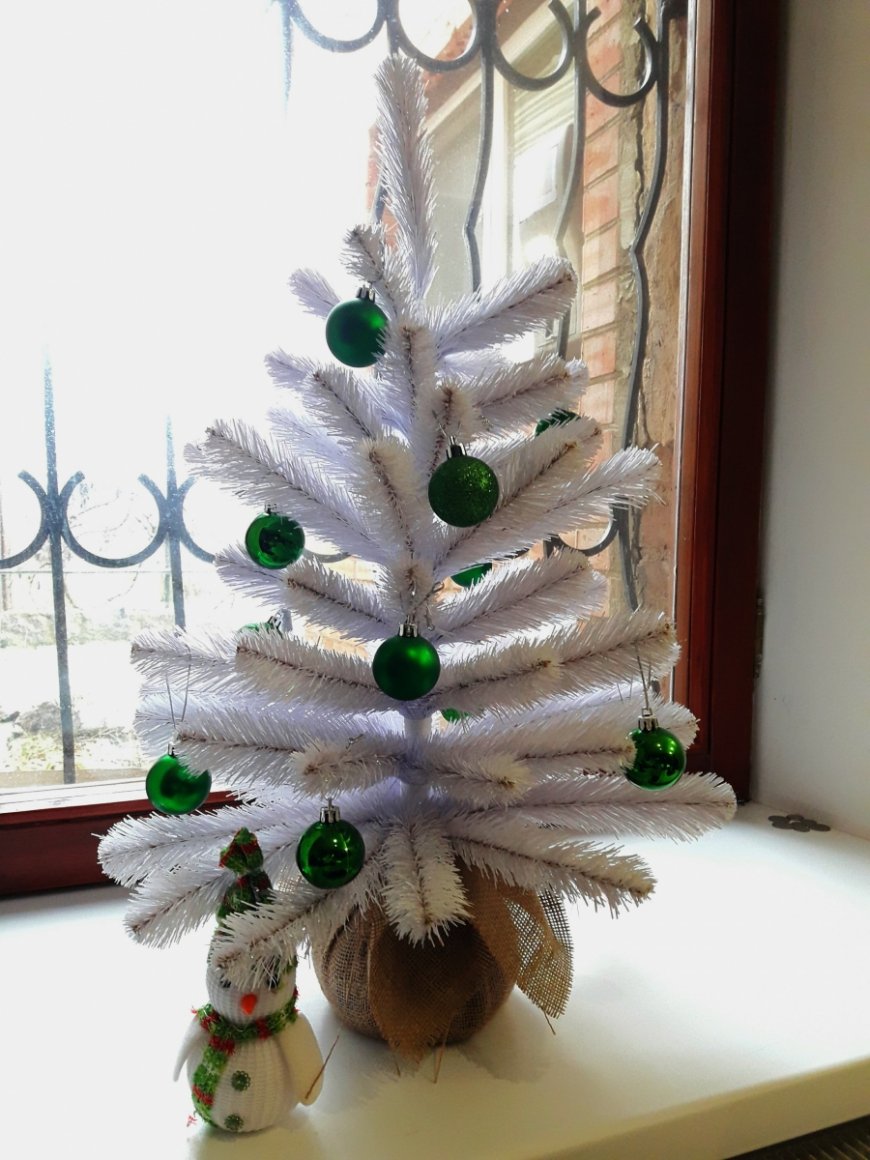 Большой подоконник можно оформить новогодними свечками дополненными гирляндами из сверкающей мишуры, бумажными снежинками и серебристым дождиком. Отличным дизайнерским решением может стать использование, в качестве украшения подоконника миниатюрной елочки ручной работы.