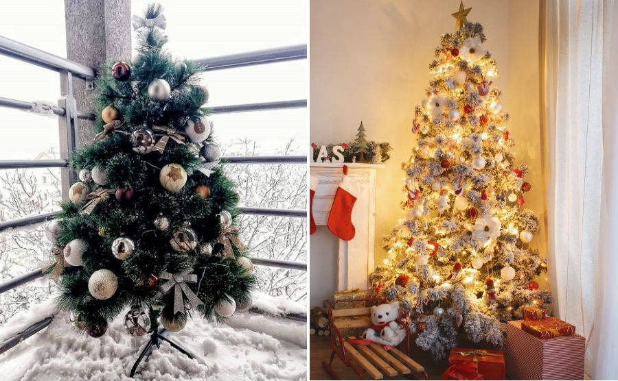 - Живой или искусственной елкой. В небольшой квартире символ праздника замените настенным панно. Ель рекомендуется украшать крупными шарами, бантами, светящимися гирляндами. Избегайте обилия дождика, иначе древо будет выглядеть старомодно.