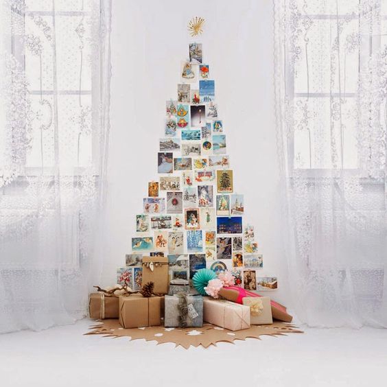 Представленные фото доказывают, как легко и просто можно самостоятельно украсить стену в зале, создав новогоднюю инсталляцию вместо традиционной новогодней елки.