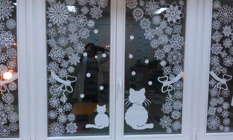 Окна декорируют в первую очередь, для этого есть множество вариантов. и фигурки можно располагать по-разному, в результате получится неповторимый дизайн. Необязательно красиво рисовать для создания таких композиций, в интернете есть много шаблонов для вырезания, которыми можно воспользоваться.