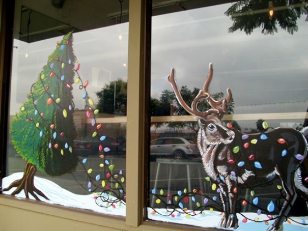 Интересная композиция с выглядывающими оленем и Санта-клаусом.