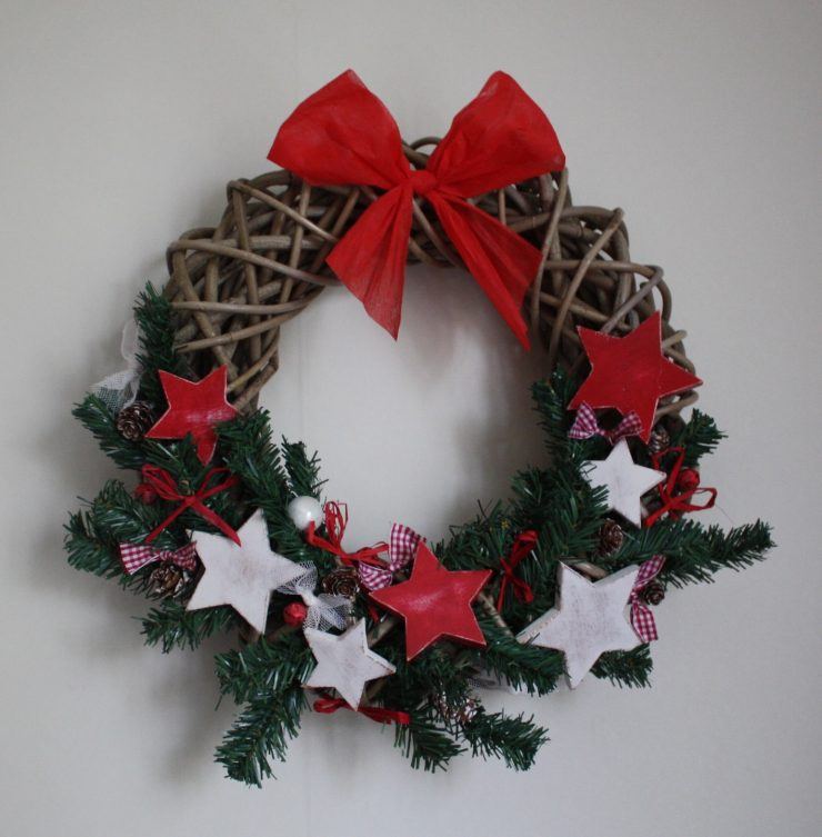 Для его создания в качестве основы используют еловые веточки, но их можно заменить на простые ветки, шишки или же просто круглую заготовку из пенопласта. В свою очередь, декоративными элементами могут быть различные шарики, ленточки, бантики, ангелы и многое другое. В специализированных магазинах вы найдете любой из представленных вариантов. Но при желании новогодний венок можно сделать своими руками.