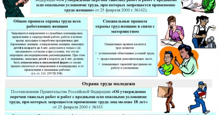 Охрана труда женщин по ТК РФ Профильное законодательство предусматривает специальные положения, в области регулирования норм работы для отдельных категорий. Охрана труда и деятельности женщин — основное социальное направление. Закон указывает на обеспечение этих норм в каждой организации, независимо от формы собственности и прочих условий. Какие именно особенности имеет описываемая правовая система, будет рассказано далее. Особенности…