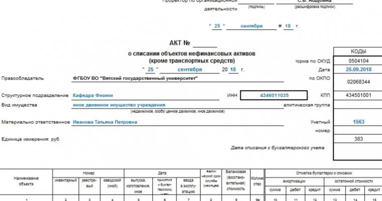 Акт о списании объектов нефинансовых активов. Образец 2018, скачать Форма 0504104 заполняется на одном листе, но с двух сторон. Прилагаемый файл содержит документ в программе Excel, состоящий из двух страниц. Акт о списании объектов нефинансовых активов (кроме транспортных средств) составляется по утвержденной форме 5054104. Составляется комиссией по факту поступления или выбытия активов. Акт оформляется на…